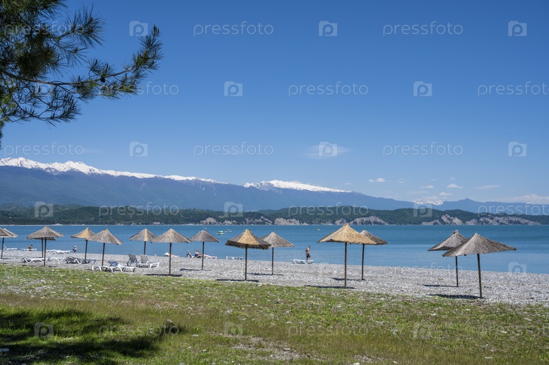 Пляж в Пицунде, Республика Абхазия. Ясный солнечный день 13 мая 2021 г