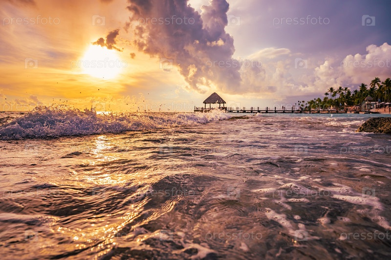 Беседка на закате моря