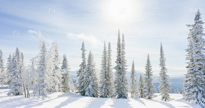 Заснеженные деревья в зимнем пейзаже