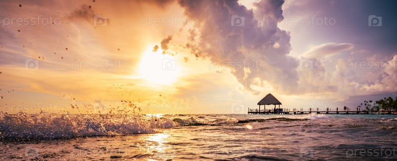 Беседка на закате моря