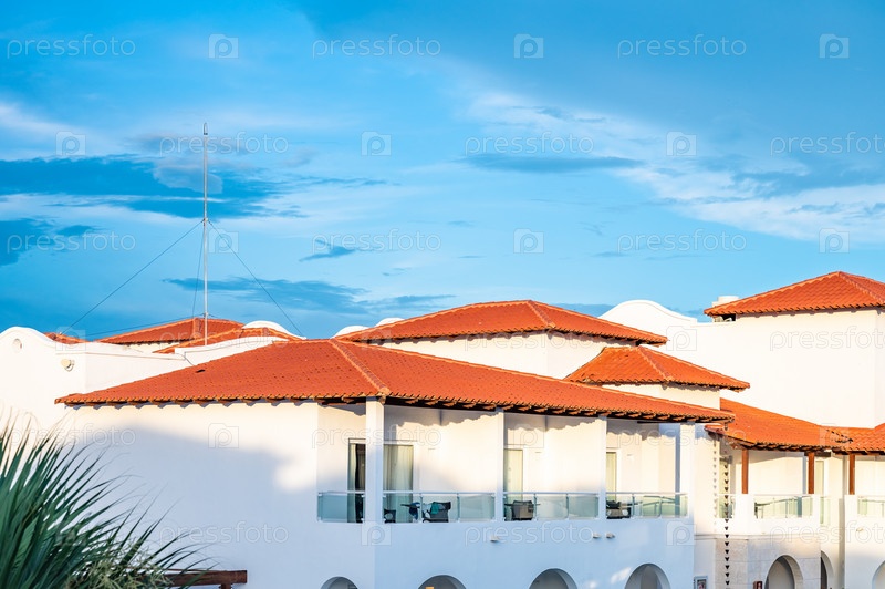 Отель с красной черепицей в зеленых листьях