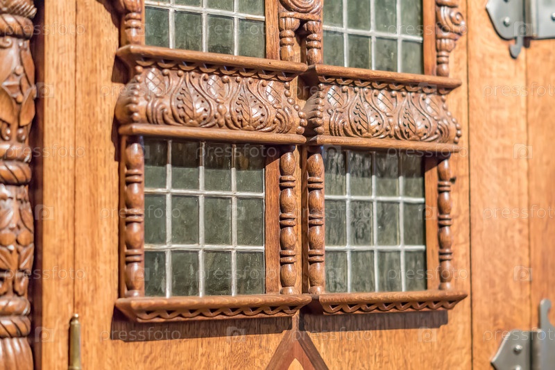 Крупный план резного деревянного шкафа