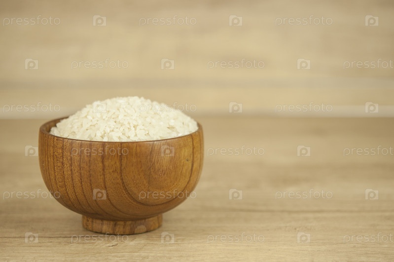Чаша белого риса на деревянном столе