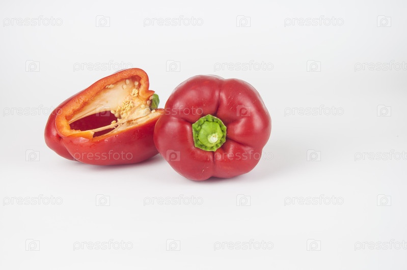 Два красных сладких перца на белом фоне