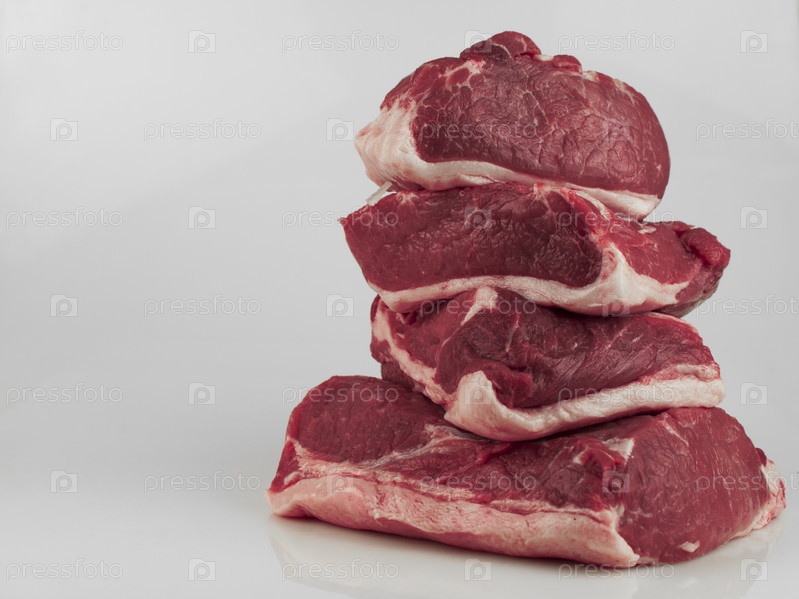 Большие куски сырой свиной шеи на белом фоне. крупный план, пространство для копирования