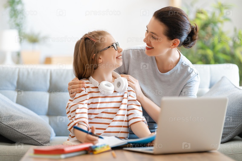 Девушка делает домашнее задание или онлайн-образование