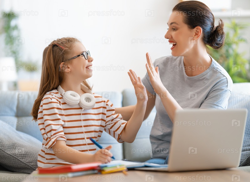 Девушка делает домашнее задание или онлайн-образование
