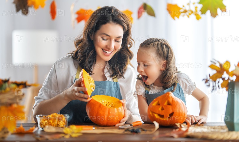 Семья готовится к Хэллоуину