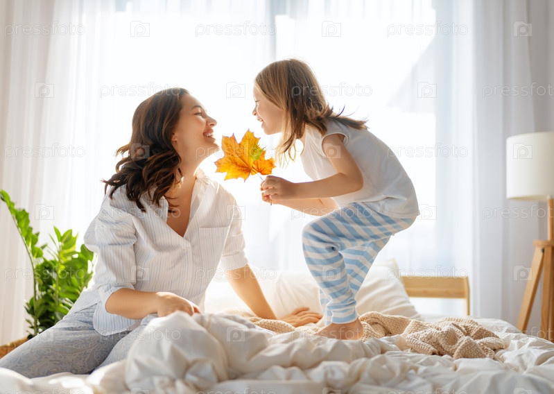 Девочка и мама наслаждаются солнечным утром