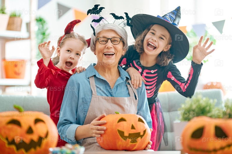 Семья празднует Хэллоуин