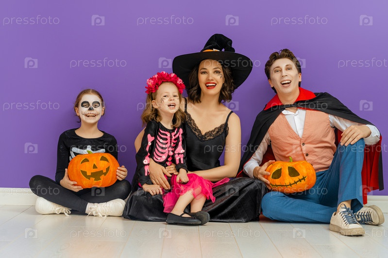 Счастливая семья празднует Хэллоуин
