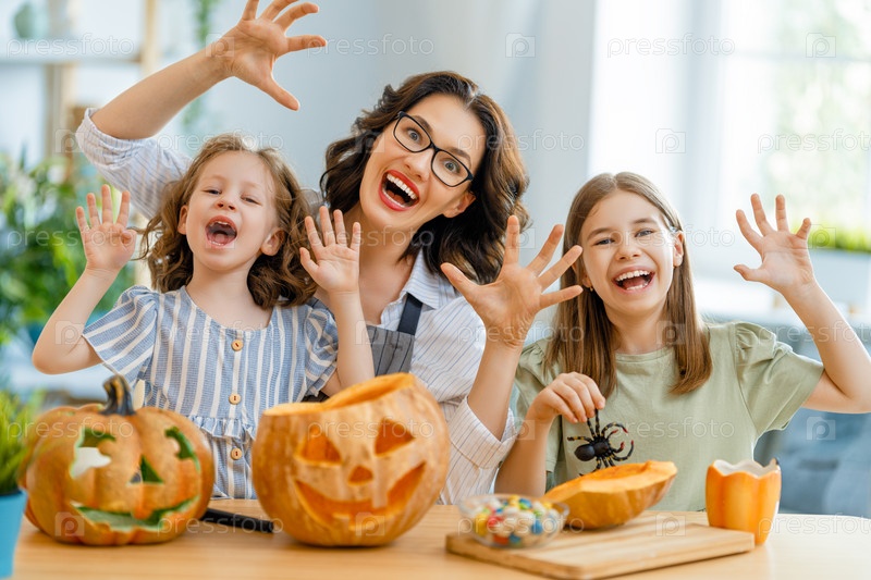 Счастливая семья готовится к Хэллоуину