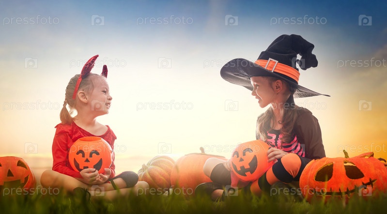 Дети в карнавальных костюмах на Хэллоуин