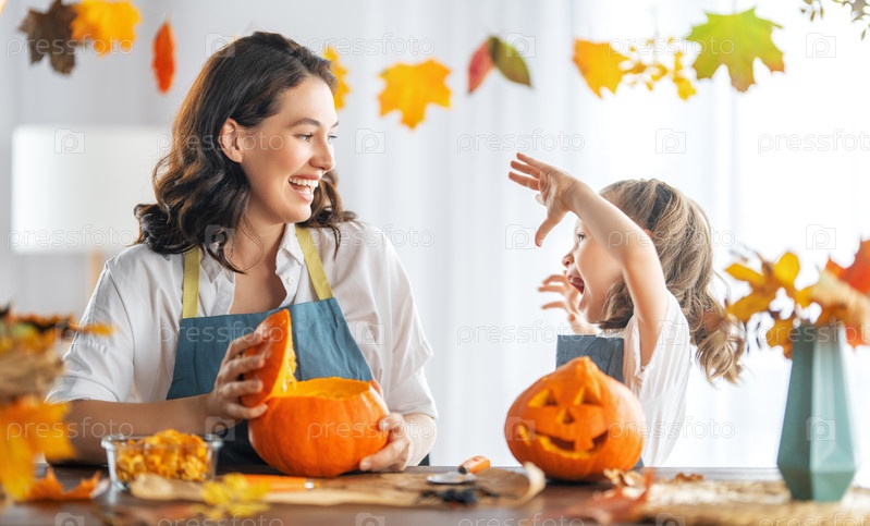 Семья готовится к Хэллоуину