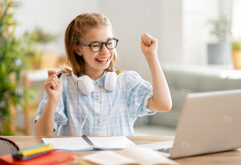 Девушка делает домашнее задание или онлайн-образование