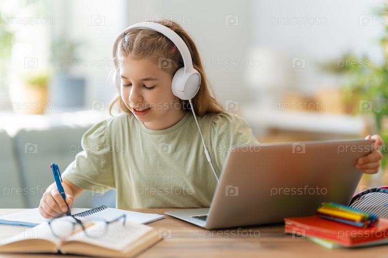 Девушка делает домашнее задание или онлайн-образование