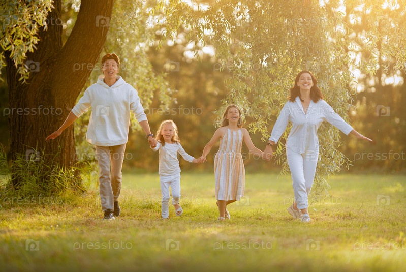 Счастливая семья на закате
