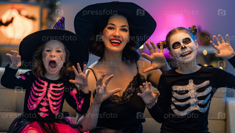 Счастливая семья празднует Хэллоуин