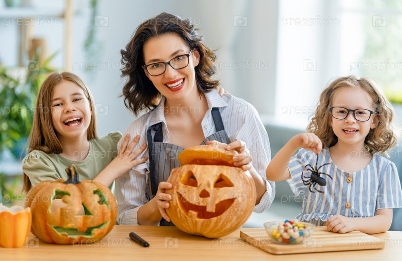 Счастливая семья готовится к Хэллоуину