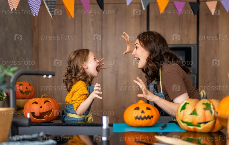 Семья готовится к Хэллоуину