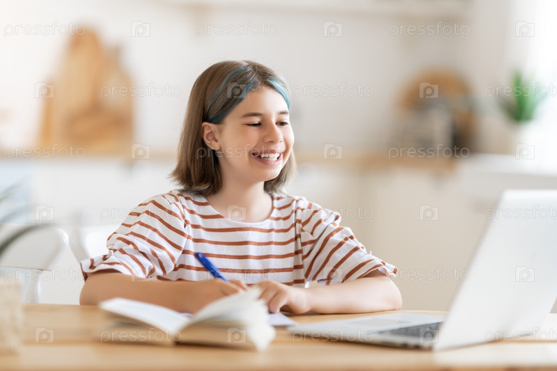 Девушка делает домашнее задание или онлайн-образование
