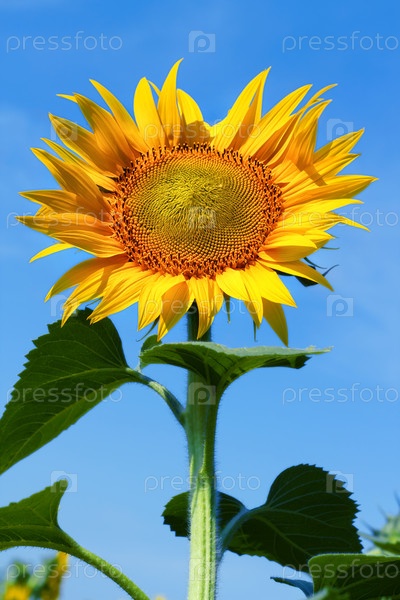 Цветок подсолнуха крупным планом на фоне голубого неба