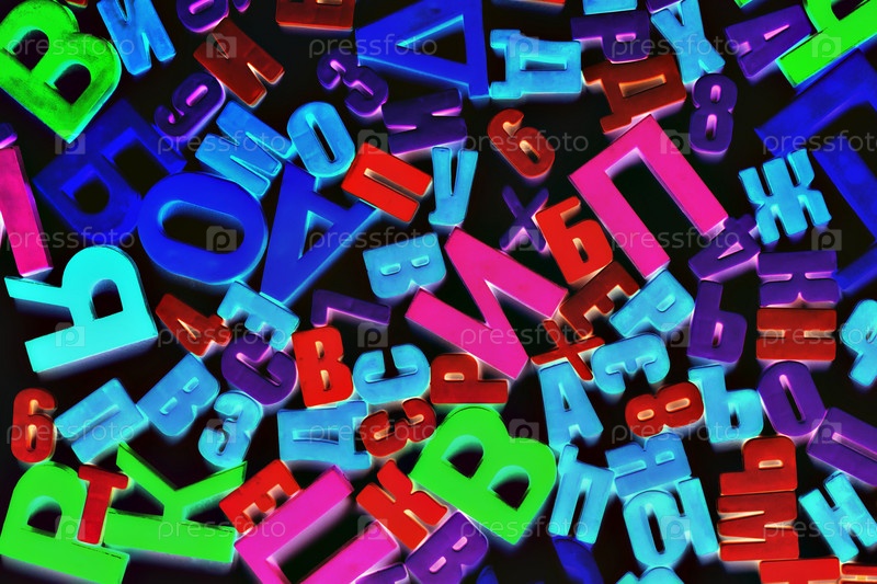 Красочные буквы алфавита на магните на черном