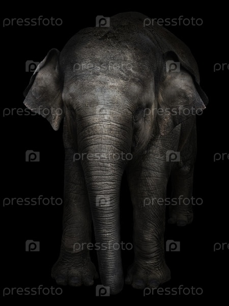 Большой серый слон на черном фоне