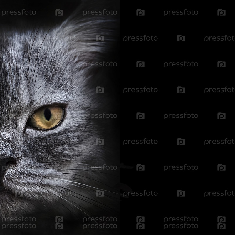 Темная морда серого кота крупным планом. передний план
