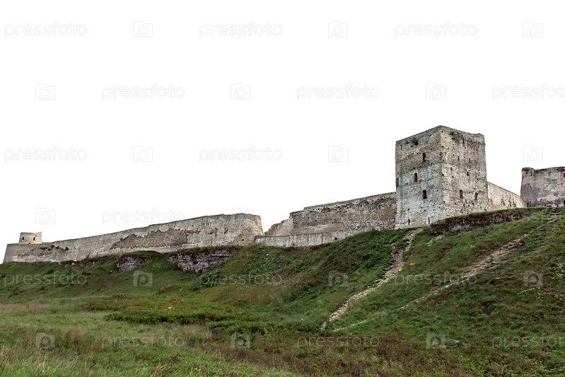 Старая крепость на холме на белом фоне