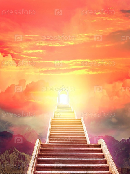 Лестница, поднимающаяся к восходящему солнцу