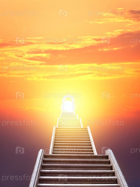 Лестница, поднимающаяся к восходящему солнцу