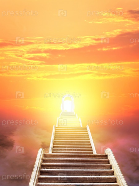 Лестница, поднимающаяся к восходящему солнцу
