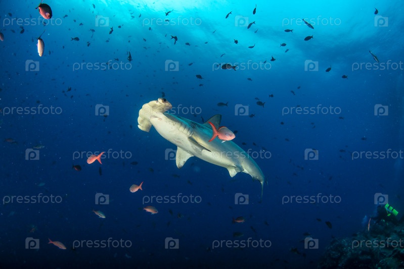 Акула-молот (Sphyrnidae) плавает в тропических водах
