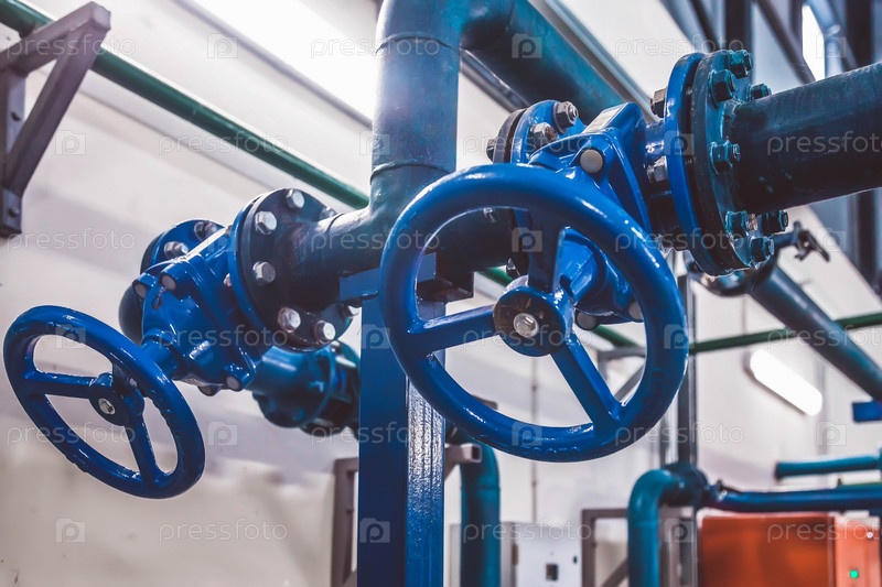 Запорная арматура на водонасосной станции представляет собой трубопровод с резервуарами для воды в производственном помещении для подачи воды высокого давления. Водораспылительные трубы и система контроля давления. Скопируйте место для сайта