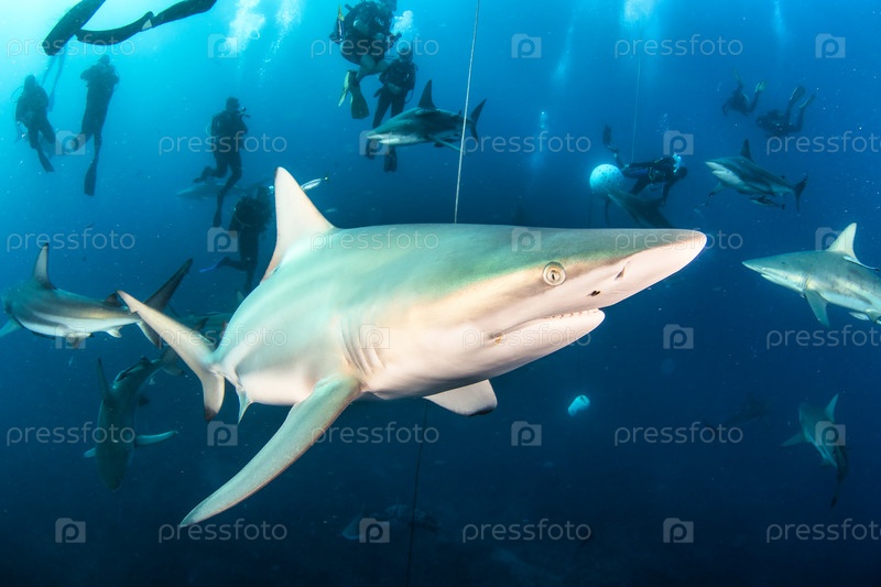 Черноперая океанская акула плавает в тропических водах