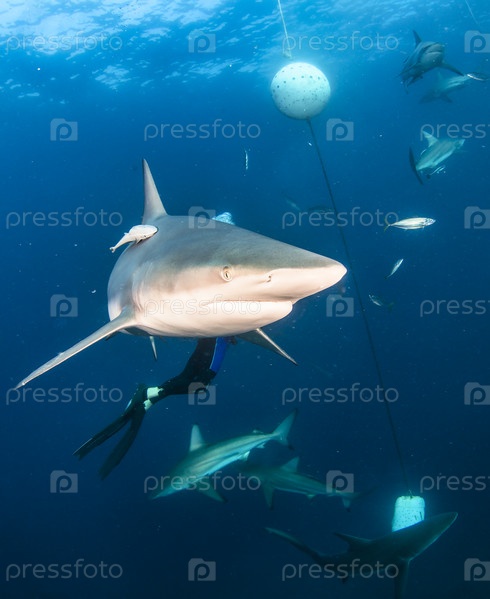 Черноперая океанская акула плавает в тропических водах