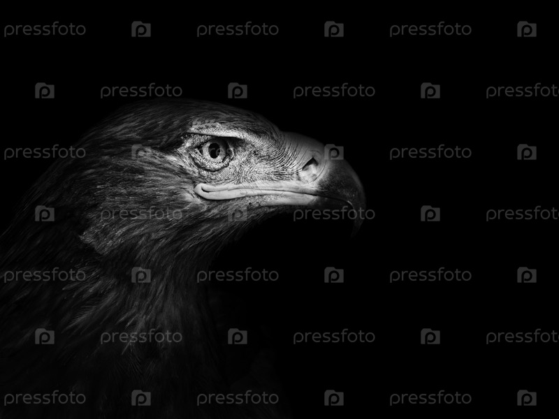 Орел в профиль крупным планом на черном фоне