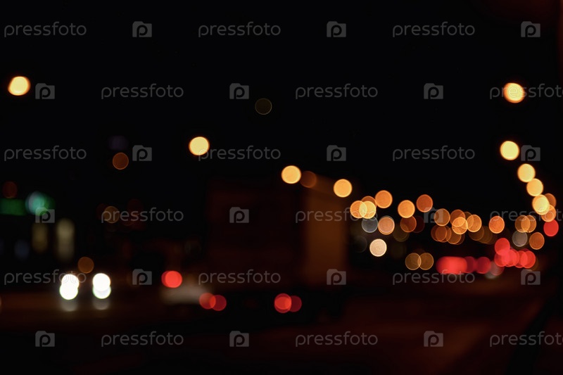 Абстрактный боке фон ночной улицы с автомобилями и уличными фонарями