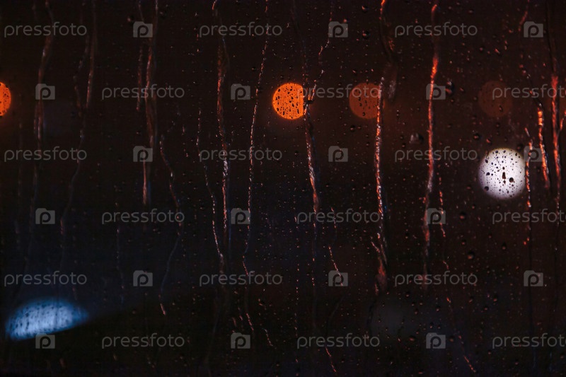 Абстрактный фон с каплями дождя на окне и ночным размытым светом