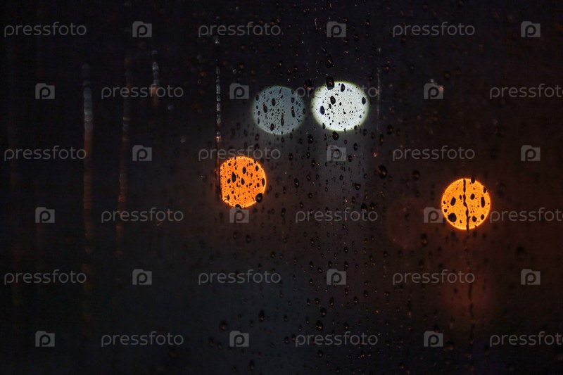 Абстрактный фон с каплями дождя на окне и ночным размытым светом