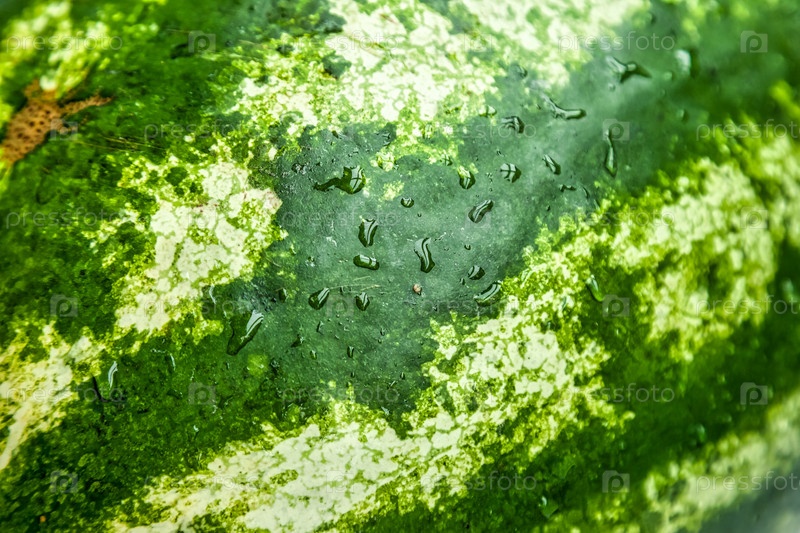 Крупный план фонового макроизображения свежего спелого арбуза с каплями на полном кадре