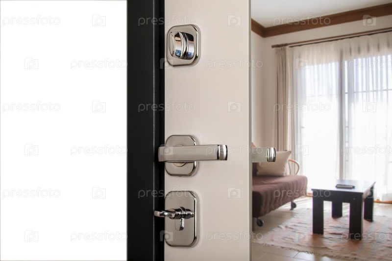 Металлическая дверная ручка и дверца с хромированной ручкой, замок. Используйте свои ключи, чтобы запереть коричневую текстурированную дверь. Замочная скважина и дверная ручка крупным планом. Концепция запертых дверей для дизайнерской квартиры или офиса.