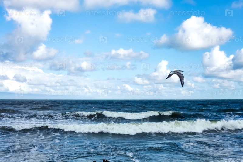 Атмосферный пейзаж Драматическое Балтийское море, волны и брызги воды