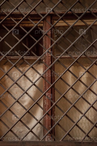 Фоновое старое винтажное окно с решетками из тяжелого металла. Окно с открытым стеклом и решеткой в Старом городе. Безопасность от взлома квартиры. Концепция строительства и дизайна. Копировать пространство