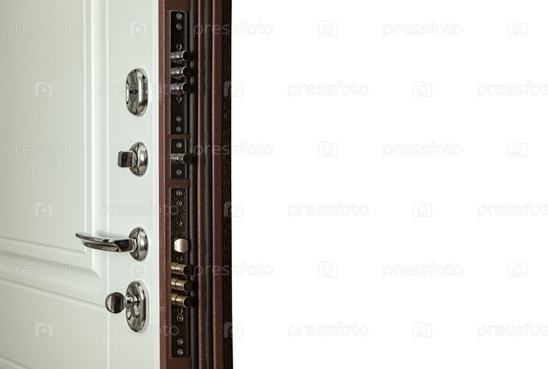 Закрыть открытую входную дверь на белом изолированном фоне