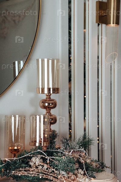 Украшенная новогодняя гостиная с канделябрами дома