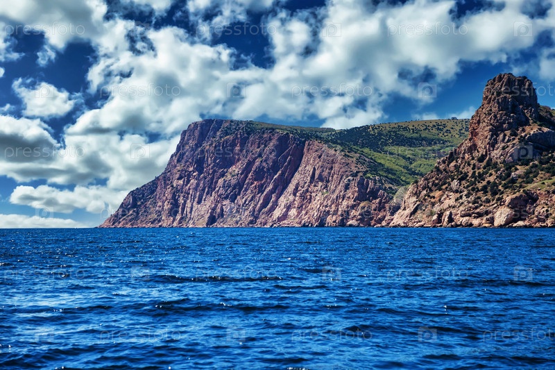 Удивительный пейзаж на побережье голубого океана в ясную солнечную погоду