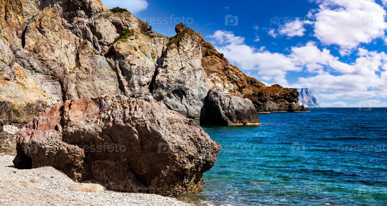 Удивительный пейзаж на побережье голубого океана в ясную солнечную погоду