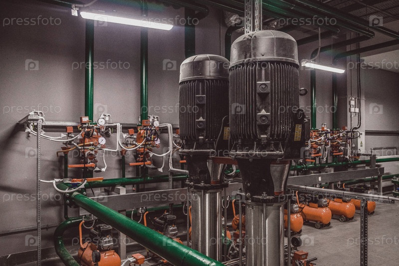 Водяная насосная станция и трубопровод с баками в промышленном помещении